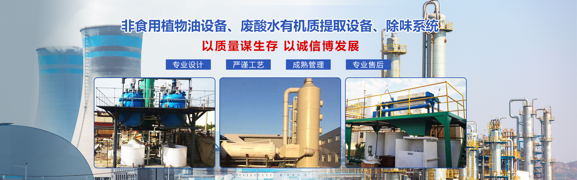 海南盛陽世紀(jì)機(jī)械設(shè)備有限公司是一家專門從事非食用植物油生產(chǎn)設(shè)備、廢酸水有機(jī)質(zhì)提取設(shè)備、除味系統(tǒng)、水處理工藝設(shè)備的設(shè)計(jì)、研發(fā)、制造、銷售、租賃以及技術(shù)培訓(xùn)、自動(dòng)化設(shè)計(jì)等一站式服務(wù)的專業(yè)公司